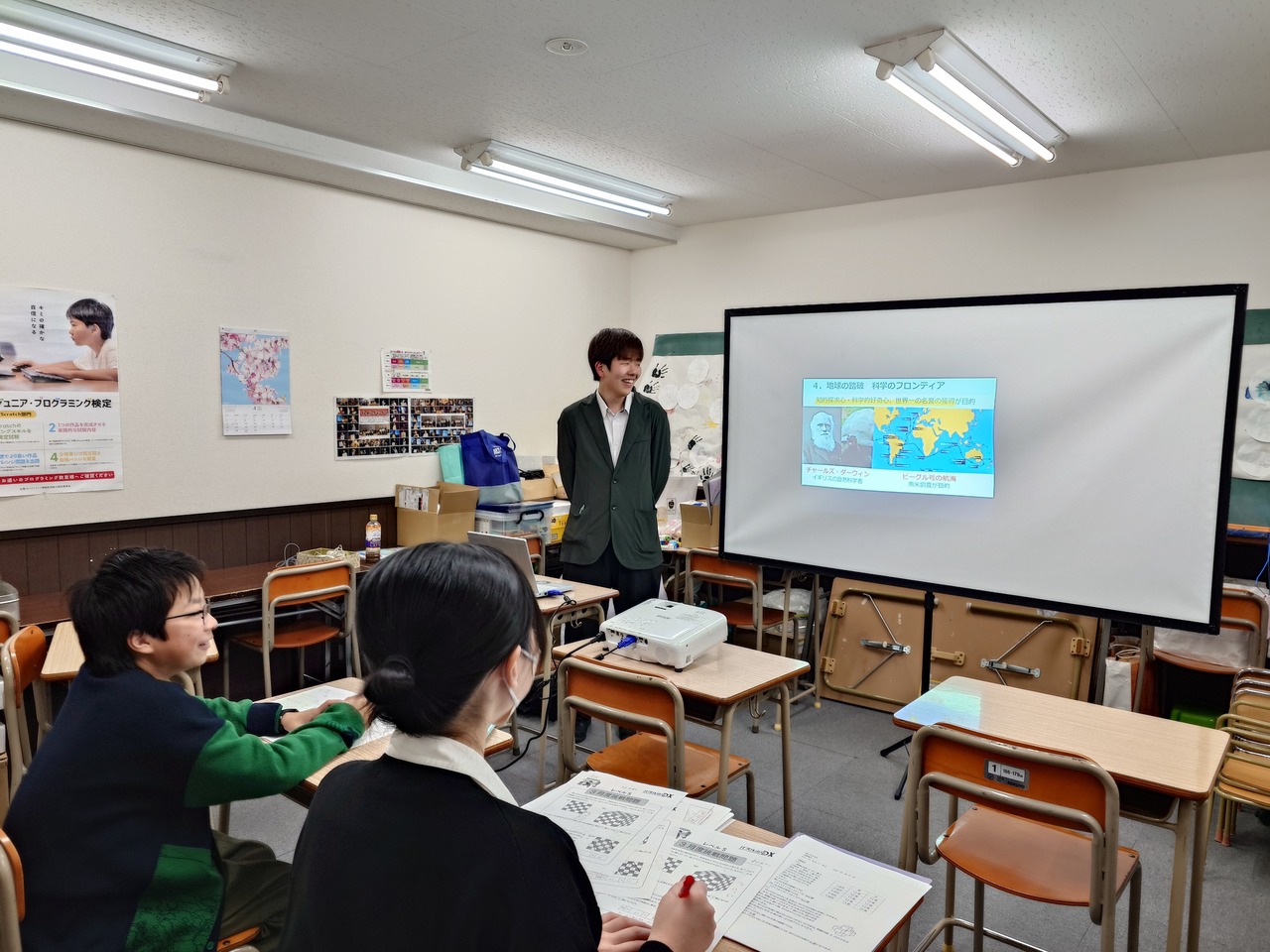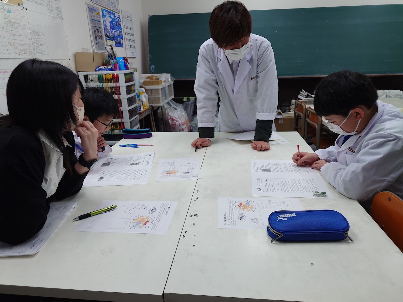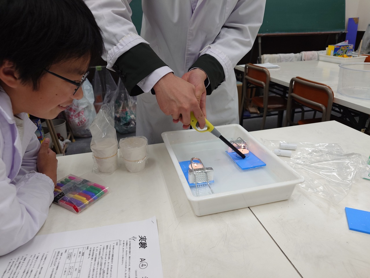 「気象と気候」をテーマに、天気の変化の理屈や日本そして世界のさまざまな天候を探究します。また、「吸熱」に注目して瞬間冷却剤の仕組みを調べます。そして、その知識を使って高校入試問題をみんなで解いて理解を深めます。